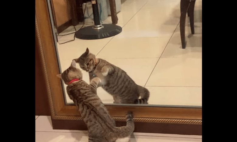 https://www.youtube.com/watch?v=A3dyd79bBFU الوصف قطة تتفاعل مع انعكاسها في المرآة بشكل طريف المصدر - ViralHog