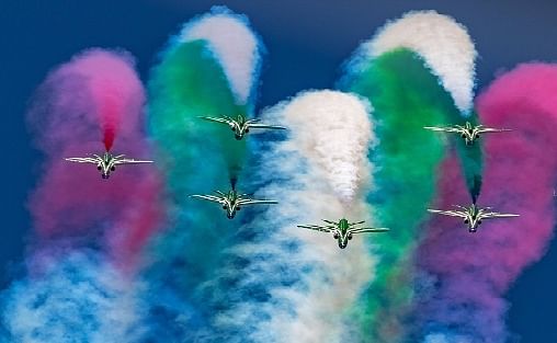 وأوضح قائد فريق الصقور السعودية المقدم طيار محمد بن عبدالله الفارس، أن مشاركة القوات الجوية تضمنت عروضاً جوية احترافية بطائرات فريق الصقور السعودية، فيما قدمت طائرتا التايفون عروضاً جوية انفرادية، وأظهروا من خلالها المستوى العالي لقدرات ومهارات الطيارين السعوديين.