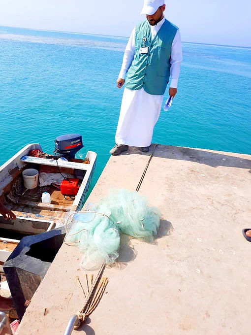 ضبطت فرق الرقابة بوحدة الثروة السمكية بجدة التابعة لفرع وزارة البيئة والمياه والزراعة بمنطقة مكة المكرمة، شباك صيد محظورة مع مواطن بمرسى البضيع.